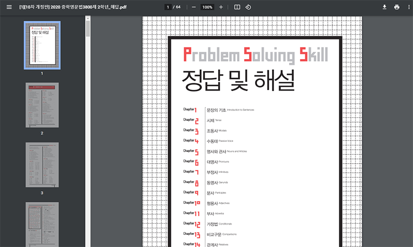 이후에 파일을 열어보면 이런식으로 내용이 나오니 이를 스마트폰이나 태블릿 등과같은 기기에 넣어서 이용하거나 필요한 부분만 프린트하여 사용해보면 될 것 같습니다. 지금까지 마더텅 중학영문법 3800제 교재에 대한 자료받는 방법에 대한 글이었습니다.