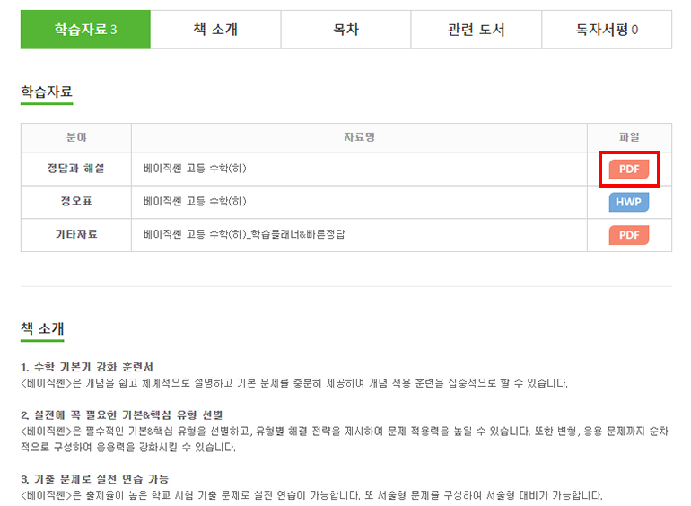 수학을 공부하면 개념과 함께 유형, 문제풀이 등과 같이 중요한 점들이 많습니다. 보통은 교과서만으로는 이러한 것들을 충족하기 쉽지않기 때문에 문제집을 추가로 풀게되는데요. 오늘은 베이직쎈 고등수학(하) 답지 받는 방법을 알아보려고합니다. 이러한 학습자료들이 필요할 때가 있기 때문에 해당 교재를 쓰는 분들은 확인해보세요.